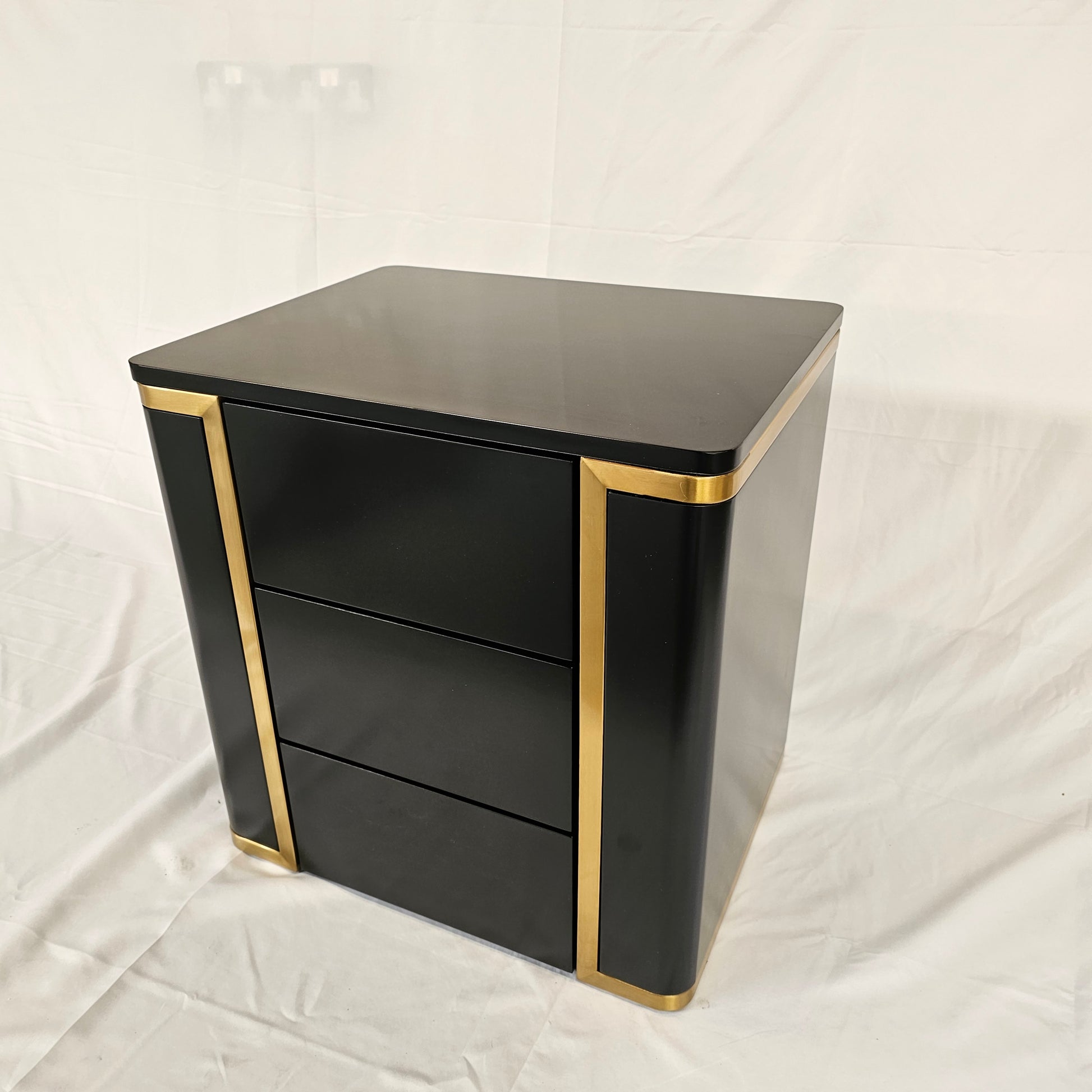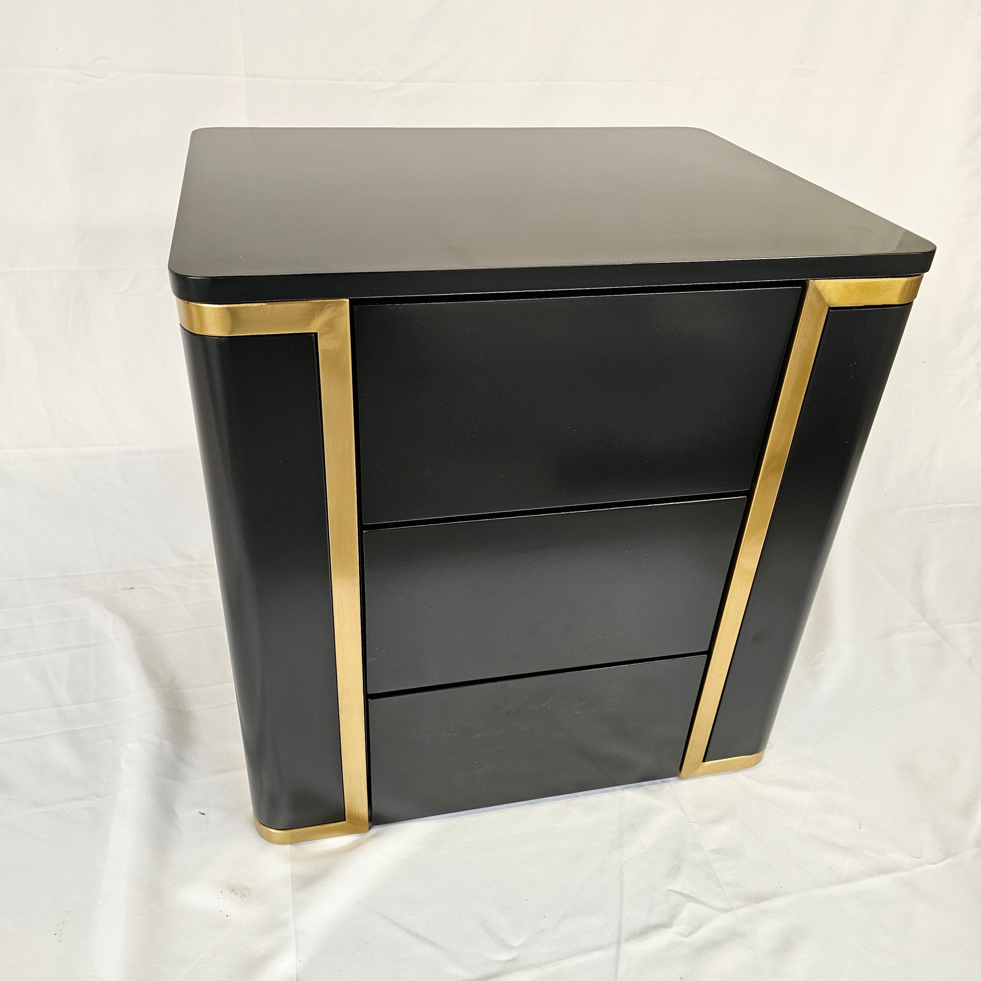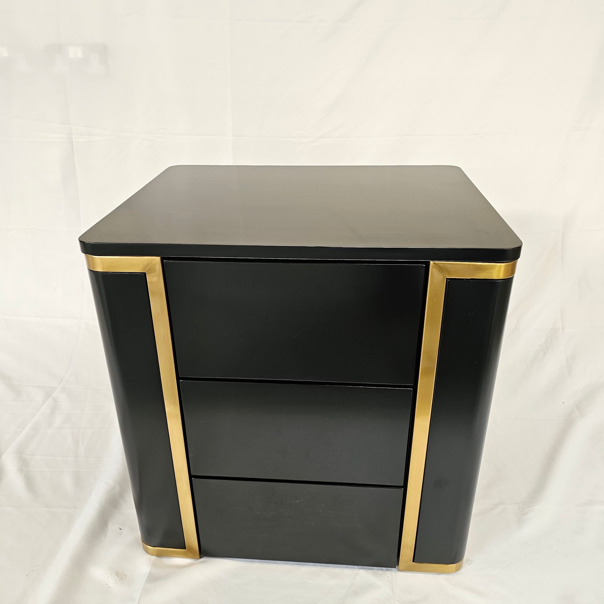 3 Drawer Modern Bedside Table Press to Open Solid Wood Gold Stainless Steel (White, Black)